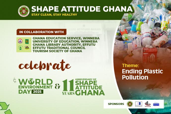 Shape Attitude Ghana, in collaboration with the Ghana Education Service (Winneba), Effutu Traditional Council, A&C Development Company, Radio Peace, and Gracelove Creations, is inviting the public to join the celebration of World Environment Day 2025 and the 11th Anniversary of Shape Attitude Ghana.
