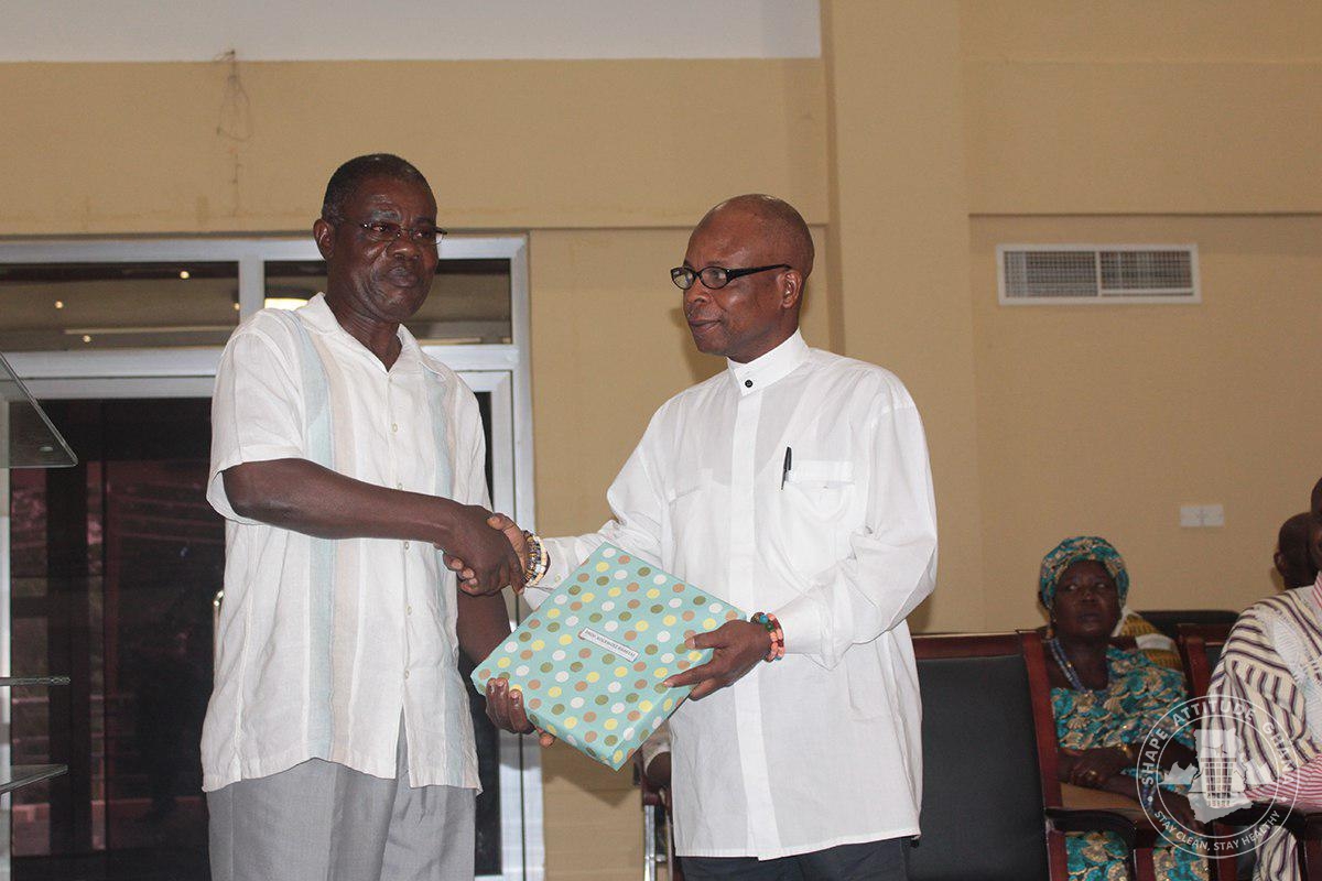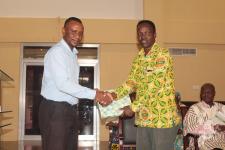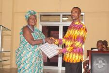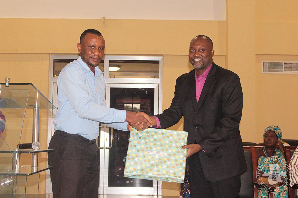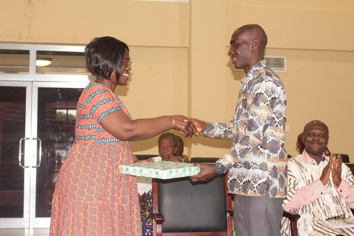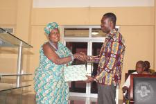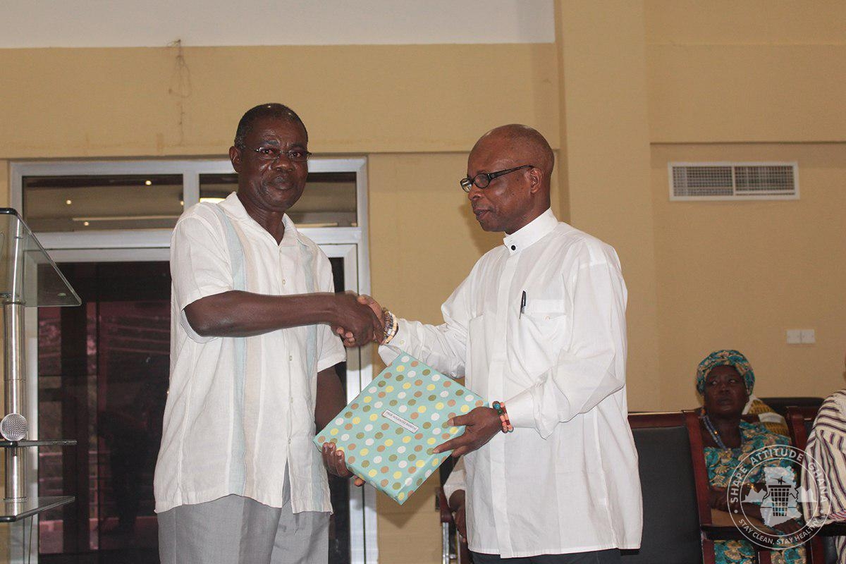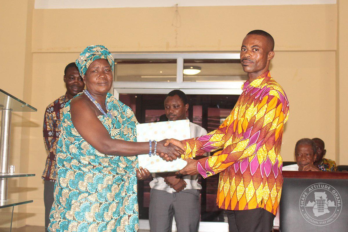 Mrs Victoria Ghartey receiving a citation for Mr Emmanuel Woode during the 2018/2019 Stay Clean Awards and 5th Anniversary
