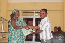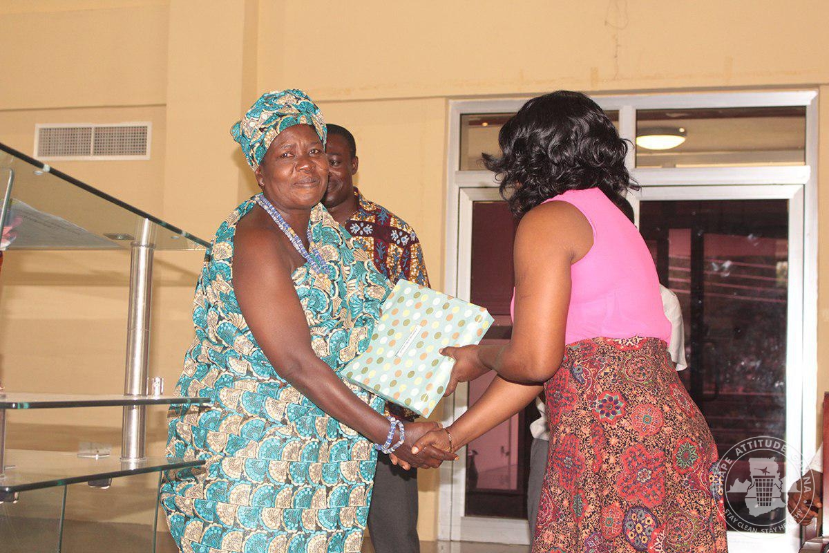 Mrs Victoria Ghartey receiving a citation for Ms. Angela Karmand during the 2018/2019 Stay Clean Awards and 5th Anniversary