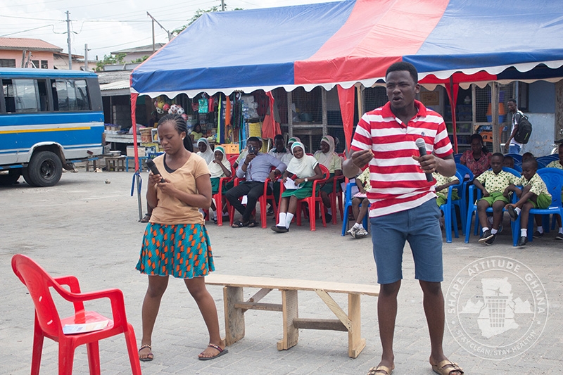 The Centre for School and Community Science and Technology Studies (SACOST) of the University of Education, Winneba (UEW) in collaboration with Department of Theatre Arts and Shape Attitude Ghana on Tuesday, 5th June, 2018 observed this year’s UN-World Environment Day Celebration at the Winneba Lorry Station.