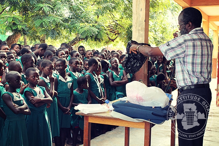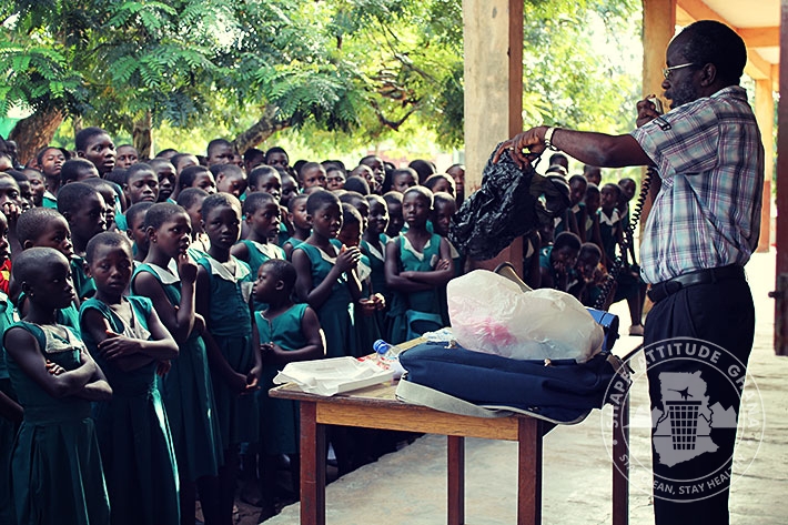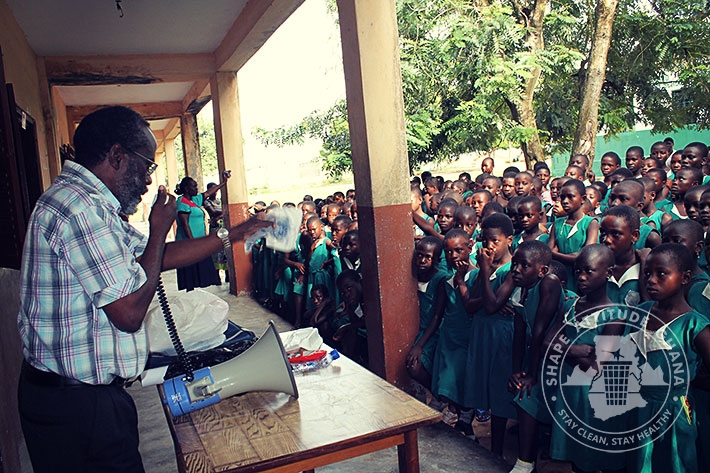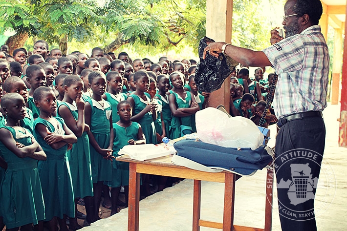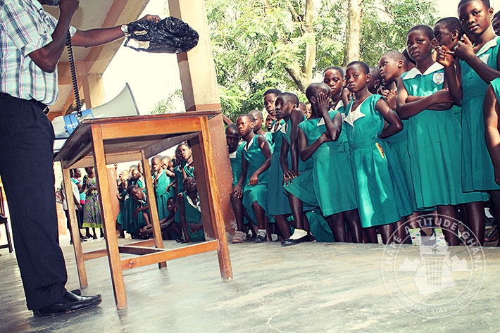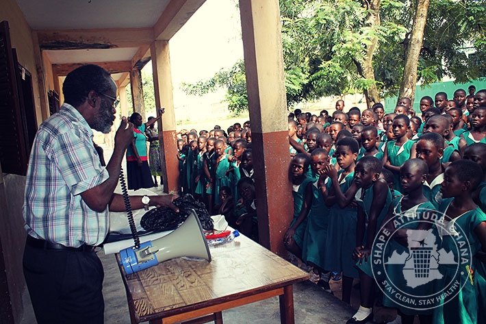 The Project Director of Shape Attitude Ghana, Mr. Wonderful Baisie Ghartey and his team had an educational session about Environmental Sanitation with students of DONBOSCO Schools in Winneba on June 12, 2015