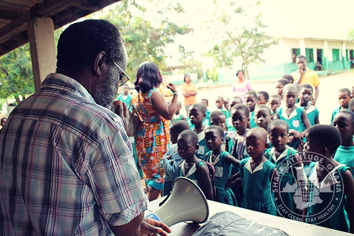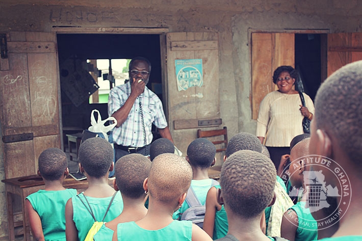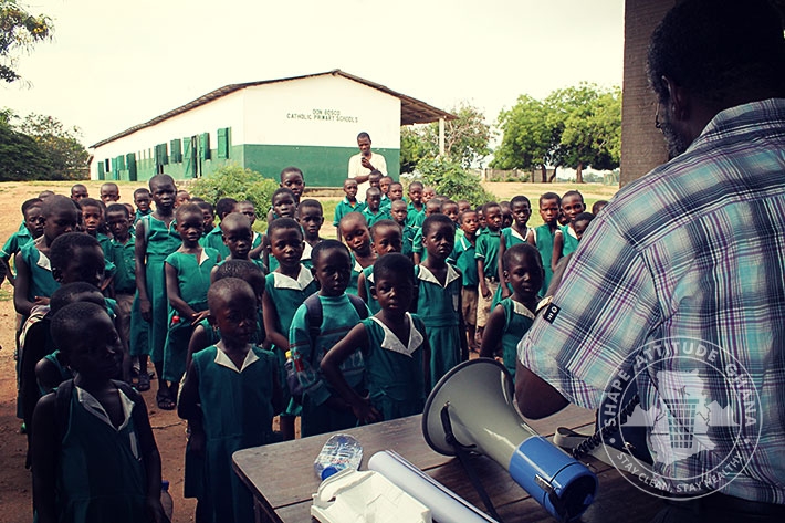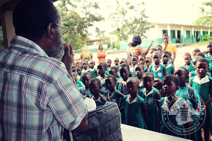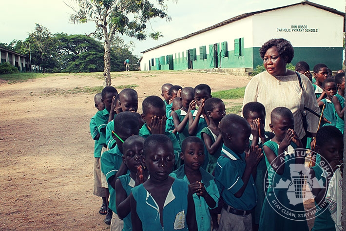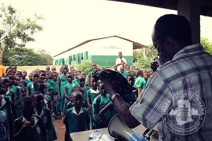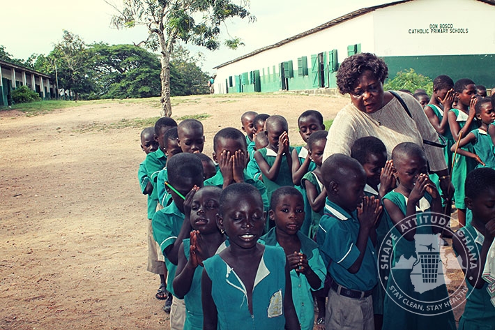 The Project Director of Shape Attitude Ghana, Mr. Wonderful Baisie Ghartey and his team had an educational session about Environmental Sanitation with students of DONBOSCO Schools in Winneba on June 12, 2015