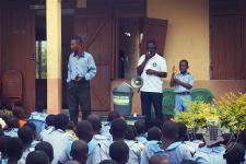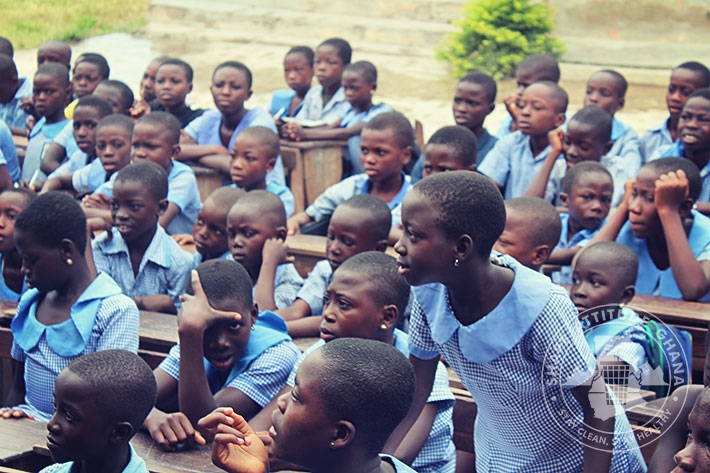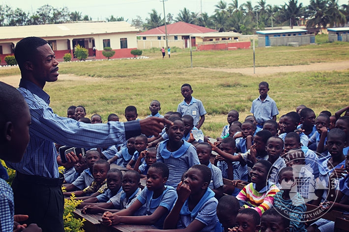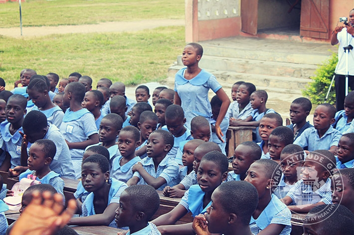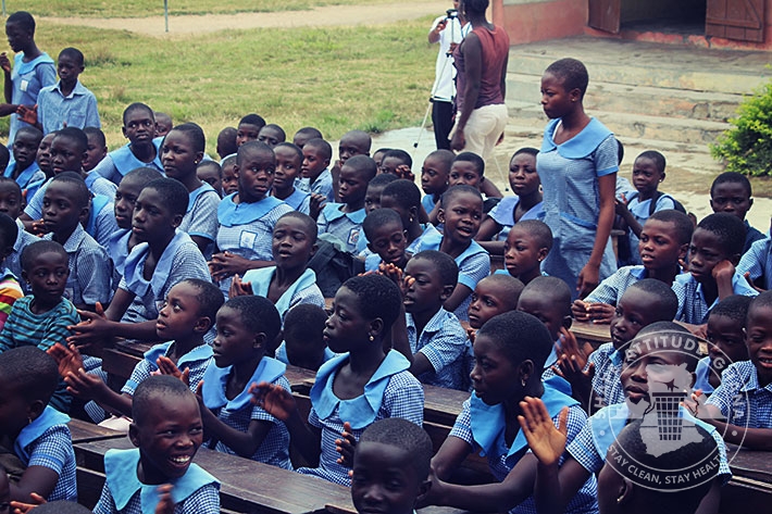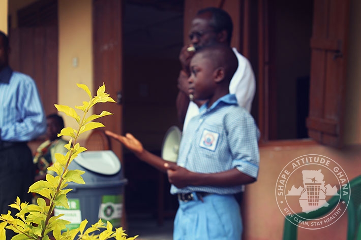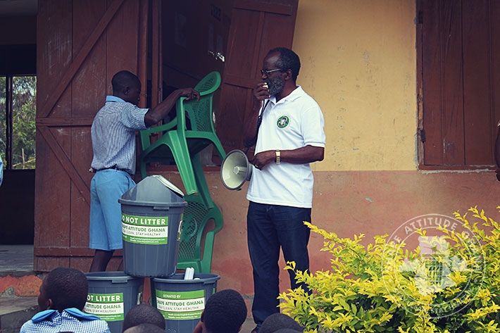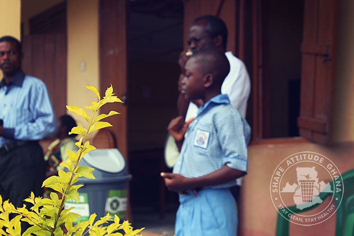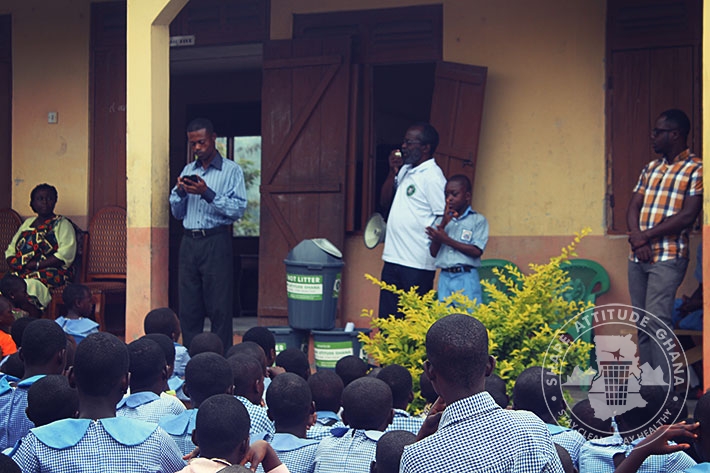 Mr. Wonderful Basie Ghartey, director of Shape Attitude Ghana and his team paid a second visit to the University Practice South Inclusive Primary School in Winneba on September 16, 2015 as part of the sensitisation drive in schools for environmental cleanliness.