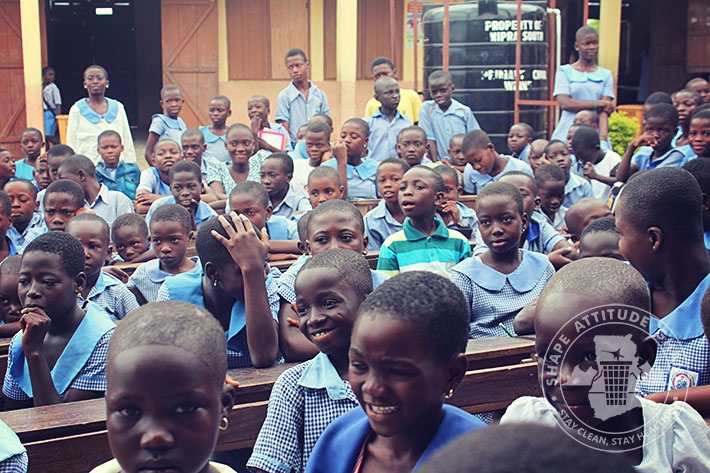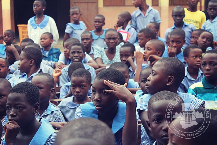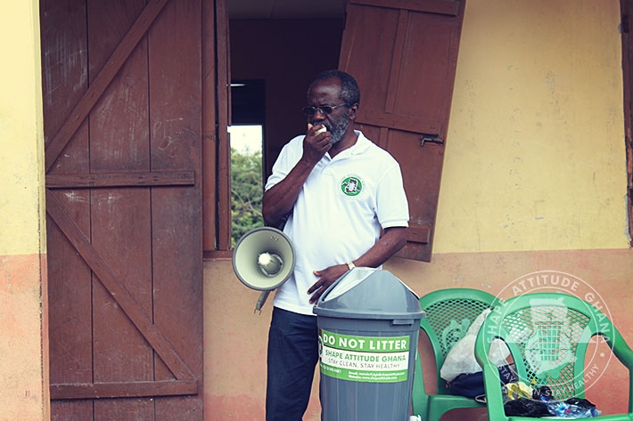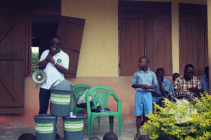 Mr. Wonderful Basie Ghartey, director of Shape Attitude Ghana and his team paid a second visit to the University Practice South Inclusive Primary School in Winneba on September 16, 2015 as part of the sensitisation drive in schools for environmental cleanliness.