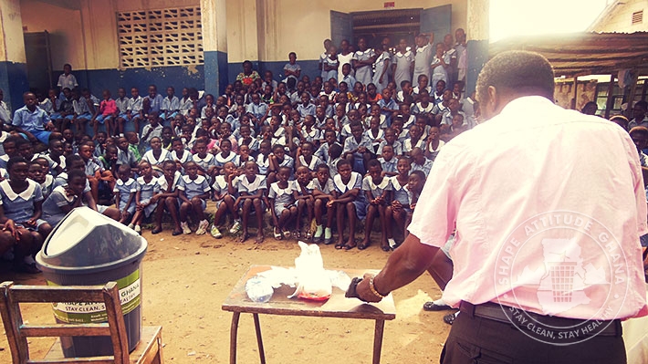 Shape Attitude Ghana lead by Mr. Wonderful Baisey Ghartey visited University Practice Primary School in Winneba and had a discussion with students about keeping the environment clean.