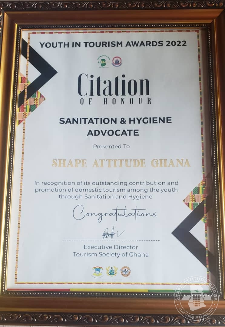 Shape Attitude Ghana received an award from the Tourism Society of Ghana (TOSOGA). The award which was in the form of citation and plague was awarded at a gala night marking the end of a week-long festival dubbed YOTOFEST (Youth in Tourism Festival).