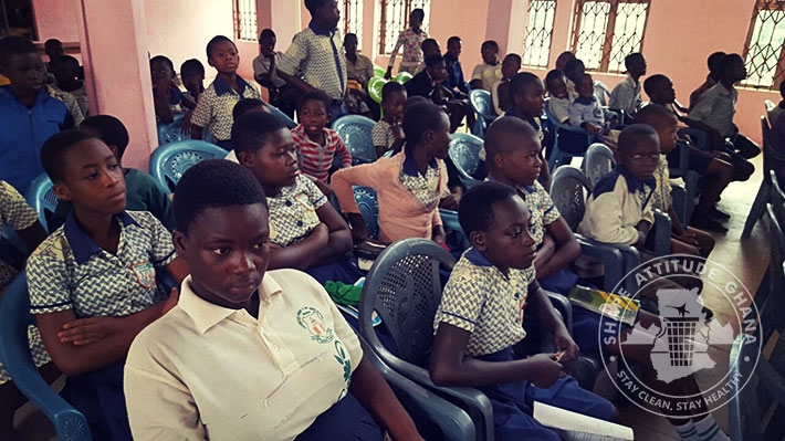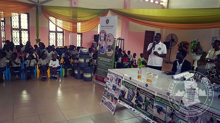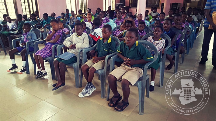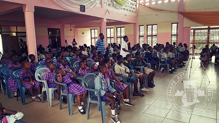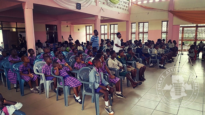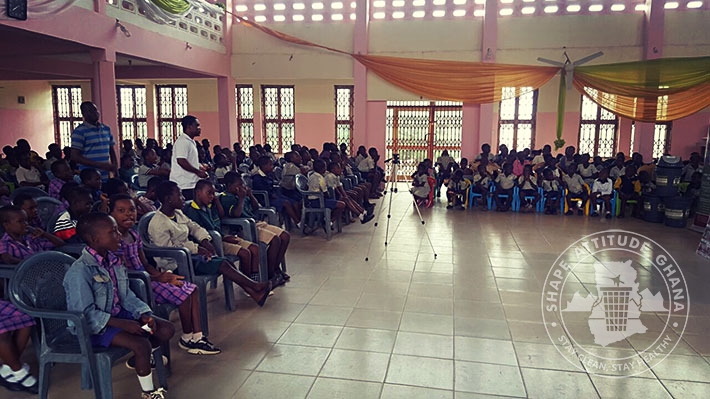 June 2016 marked the second year of establishment of Shape Attitude Ghana and commencement of activities on sensitisation on attitudinal change towards environmental cleanliness. To mark the occasion, selected pupils aged between 3 to 10 years from four schools were assembled for a sensitisation talk at the Seventh Day Adventist School assembly hall.