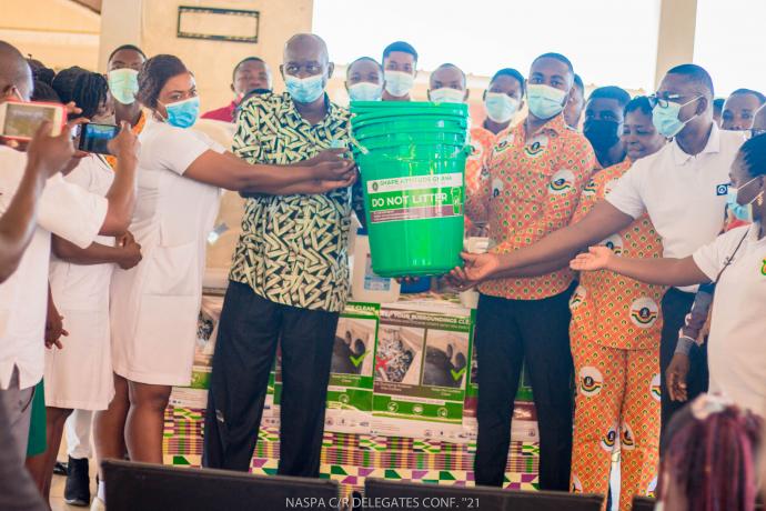As part of the initiative, NASPA made a donation of detergents, sanitisers, and rolls of tissue papers to the Cape Coast Metropolitan Hospital. SHAPE Attitude Ghana gave trash bins and posters to NASPA which were also donated to the hospital.