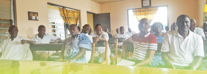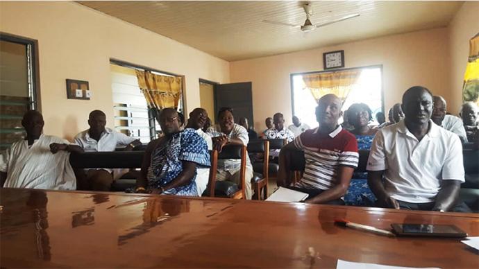 Present at the meeting were Mr. Emmanuel Esilfie, the first trustee of GPRTU Winneba main office, Madam Kate Akuamoah, Revenue Officer of the Effutu Municipal Assembly, Mr. Antwi-Boasiako Takyi, first trustee of GPRTU Taxi Branch, Winneba, Neenyi Budu, representative from the Effutu Traditional Council. They all expressed concern on the poor sanitary conditions and proposed solutions such as public education, enforcement of sanitation laws and provision of bins at vantage points in town.