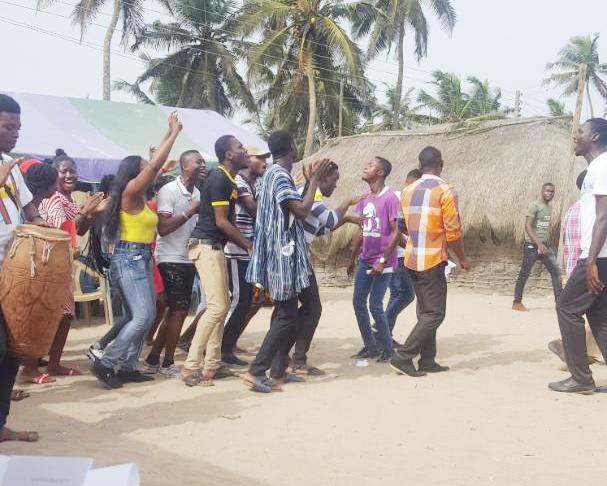 In attendance at the durbar were the Chief of Essuekyir, the Chief Fisherman, Nana Afedzie, and Rev. Bonney of Peace Baptist Mission. From the University of Education were the Head of Department of Theatre Arts, Dr. Ernest Amponsah, Dr. Samuel Yirenkyi, Dean of Students Affairs and other senior members of the Department.  The Director of SHAPE Attitude Ghana was accompanied by his spouse Mrs. Victoria Amissah Ghartey and Ms. Regina Bonney a Radio Peace presenter.