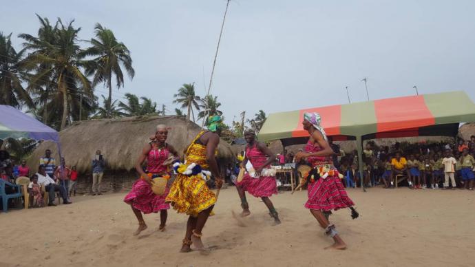 Final year students of the Department of Theatre Arts, University of Education, Winneba, embarked on a “Theatre for Development project” with ‘Your Health First’ as the theme. The project dubbed “Viable means for promoting positive attitudes towards sanitation” was undertaken at Warabeba, a fishing village near Winneba. The project which was part of the final year requirements from the students, also aimed at raising awareness and funds to rehabilitate the only public toilet in the community to stop open defecation. It was also the objective of the project to support innovative community initiatives that promote health and education in the community and to contribute to realisation of sustainable development in which children, youth and the aged in the community are involved in positive activities that will ensure good health and living condition in the community.