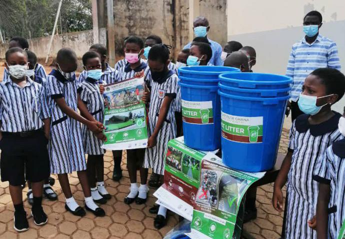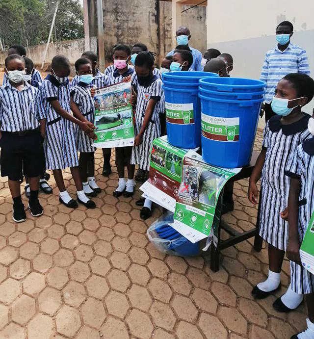 University Primary School, Cape Coast, receives trash bins from SHAPE Attitude Ghana